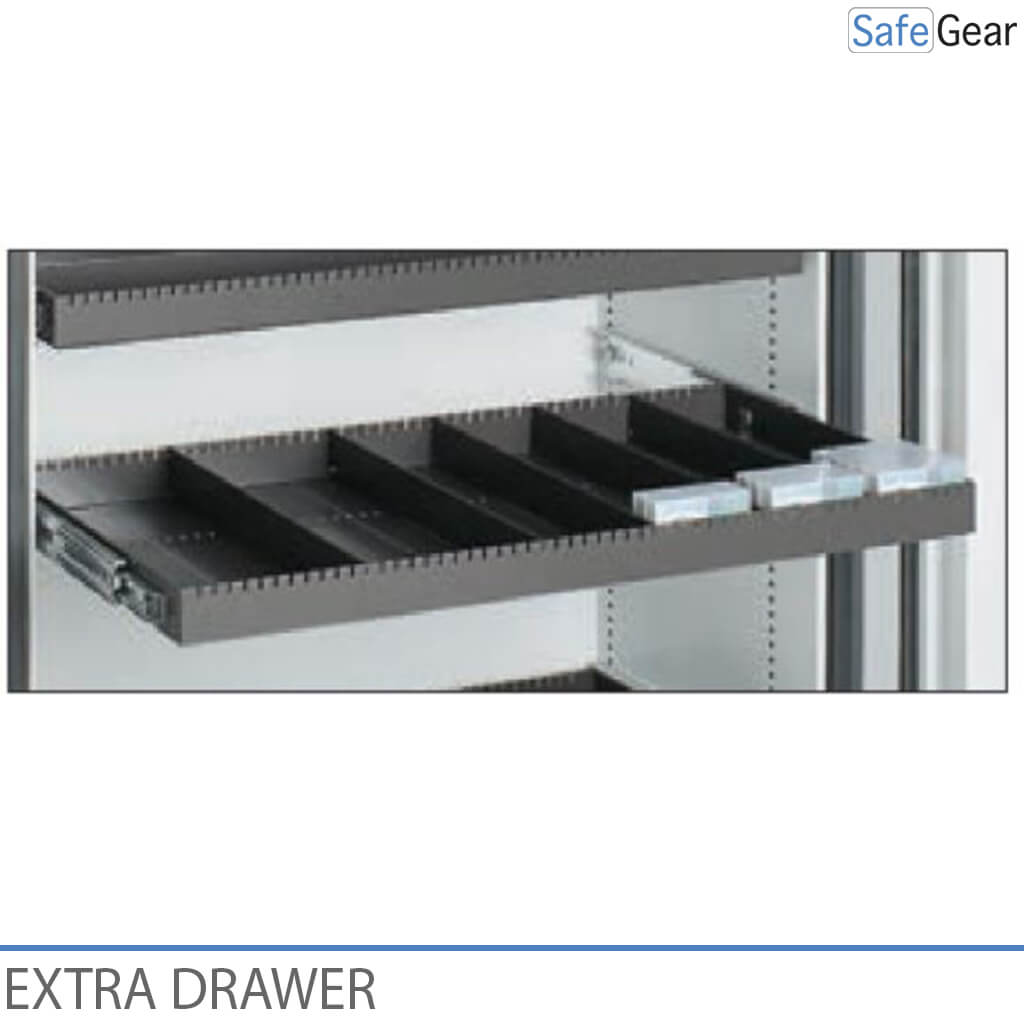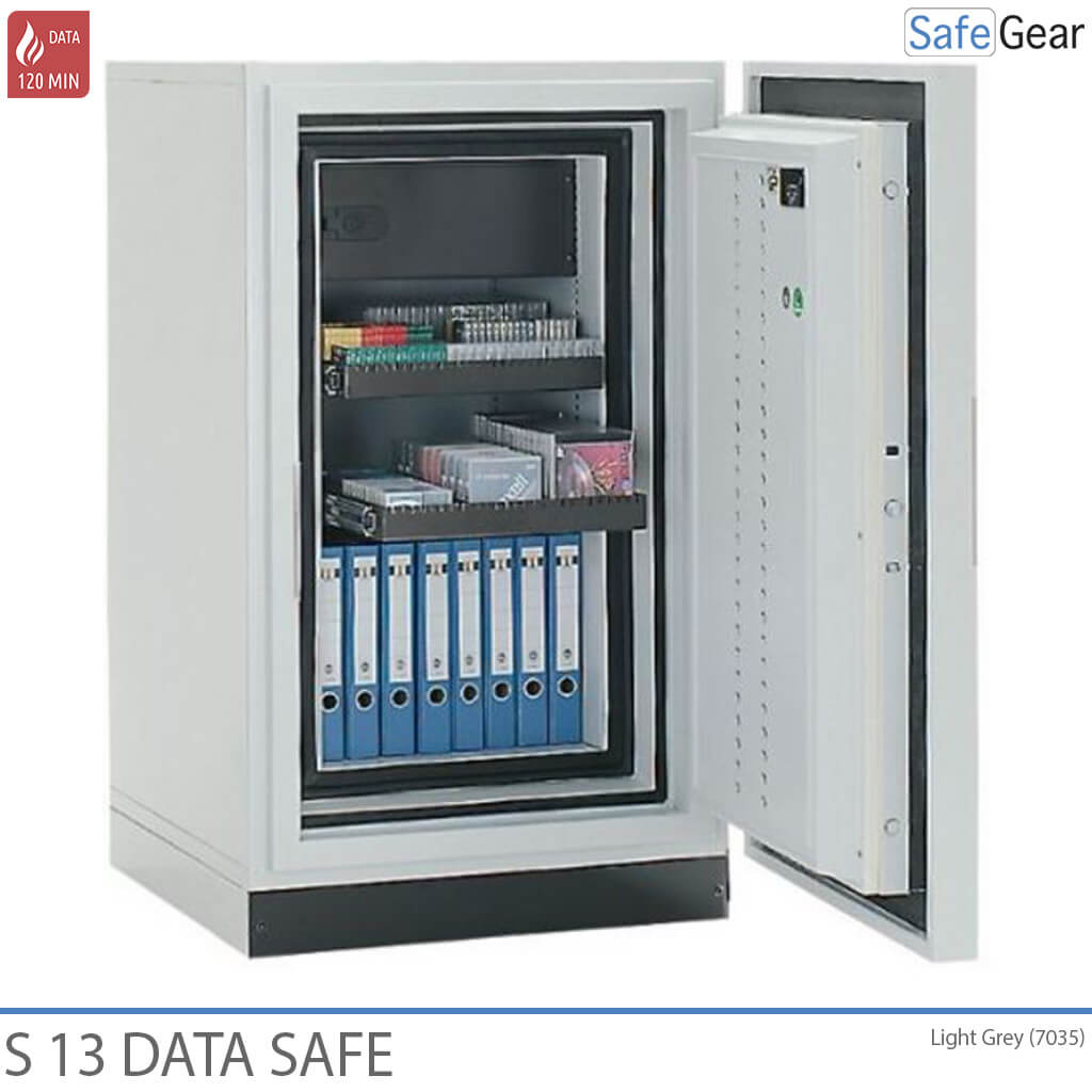 La cassaforte dati S è personalizzabile con cassetti o ripiani aggiuntivi per la memorizzazione dei dati. Questa cassaforte è dotata di blocco con chiave o con codice.