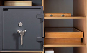 Lyra - casseforti certificate in Grado 0 e 1. Perfette per la protezione di documenti, contanti, gioielli, medicinali e altri beni di valore. Sportello e pareti sono protetti contro ogni tipo strumento da scasso meccanico e termico. Disponibili con serrat